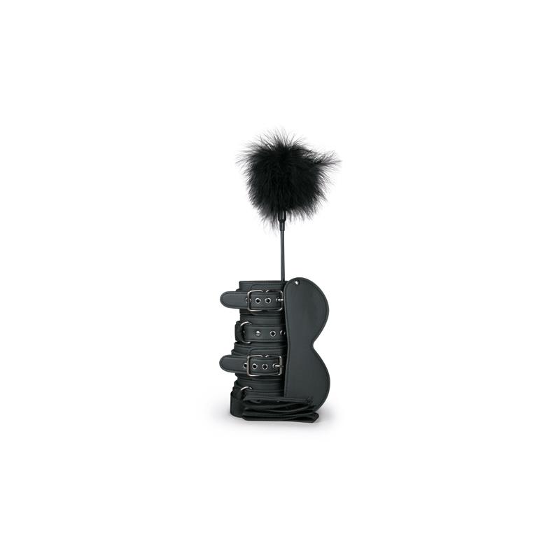 ¡El kit de principiantes bondage fantasy es la elección correcta para ti! Este divertido set se puede usar de la forma que quieras. Las cuatro esposas tienen correas unidas a ellas, por lo que puedes atar a tu pareja o atarla a postes de cama, sillas, arneses de sujeción, etc. El antifaz bloquea la luz, lo que aumenta los otros sentidos para una emocionante experiencia. Gracias a la correa elástica puedes ajustarlas tanto como quieras. Usa las plumas estimuladoras para provocar a tu pareja y estimular las terminaciones nerviosas. Esto hace que la piel sea aún más sensible.