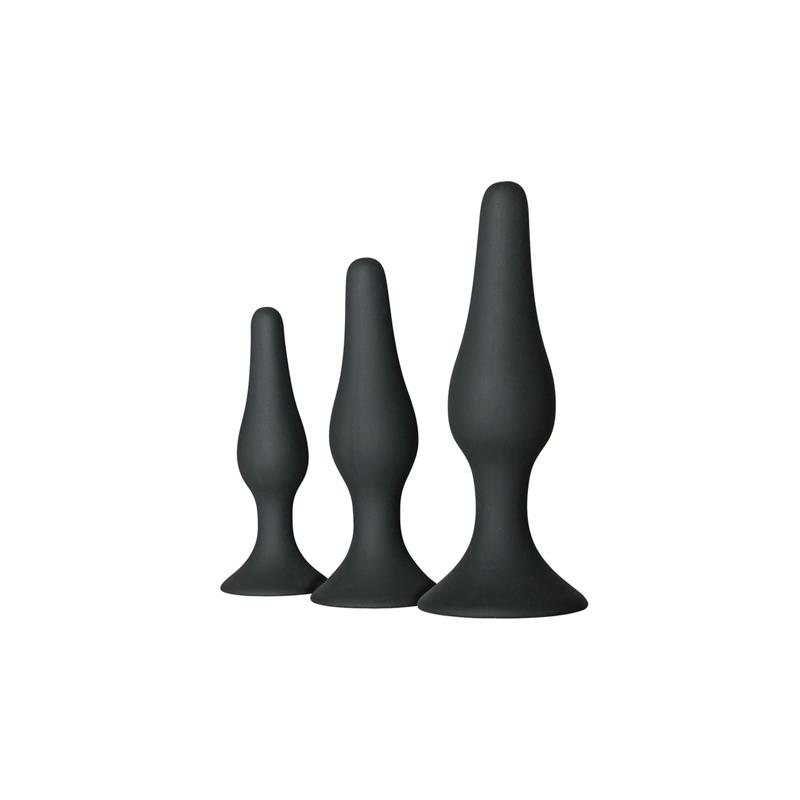 ¿Eres nuevo en el mundo del sexo anal? Gracias a este set de 3 plugs anales podrás viajar a tu ritmo entre el placer. Comienza con el más pequeño, sigue por el mediano y termina por el más grande, que te llenará por completo. Gracias a su ventosa plana, que hará que el plug no se moverá de su sitio y lo puedas usar donde quieras, y a su punta redondeada, ideal para una inserción y extracción suave, se convertirá en tu set favorito.